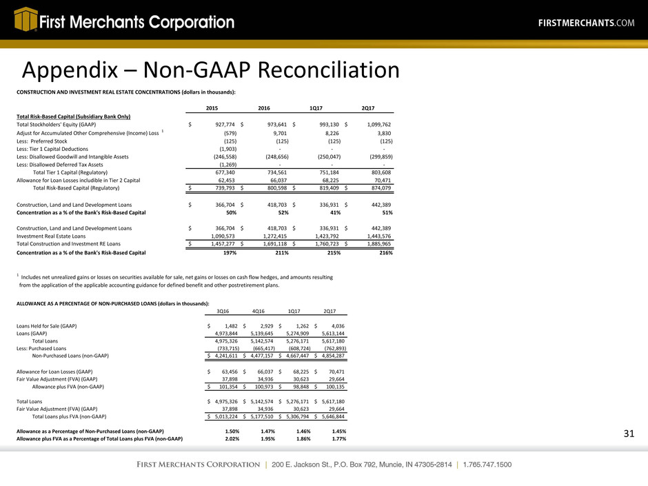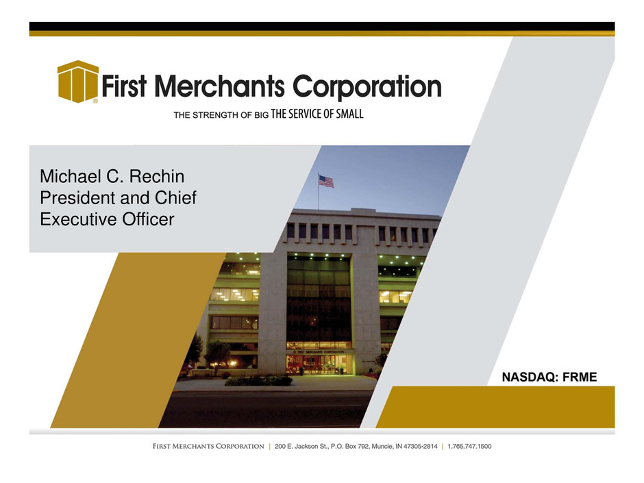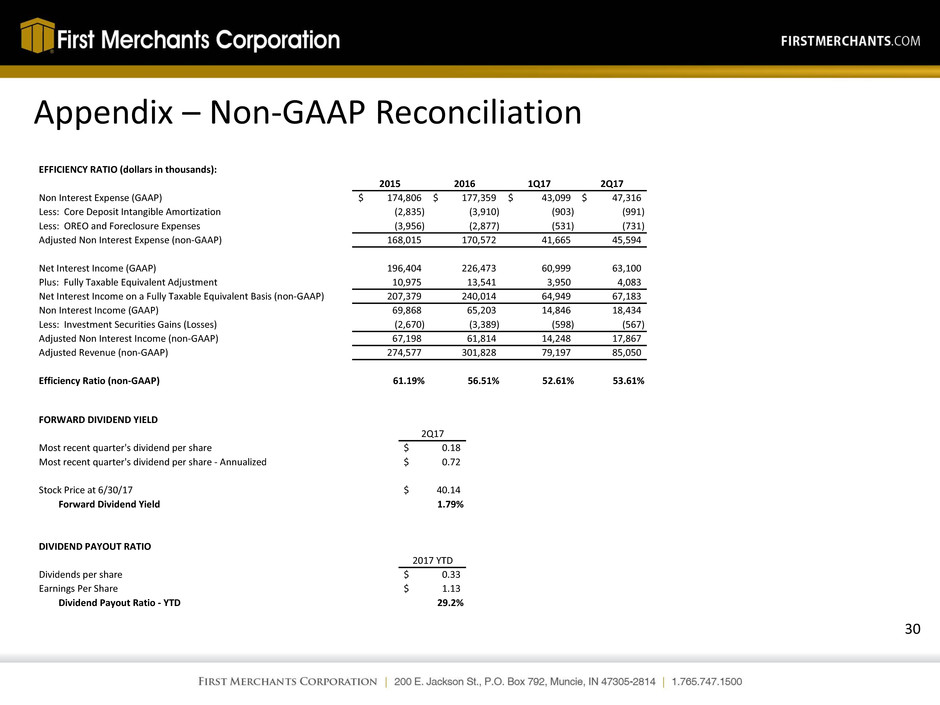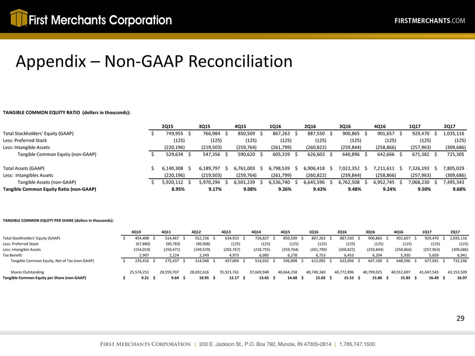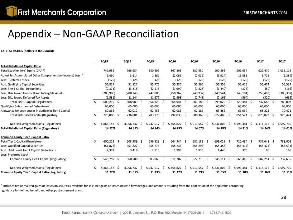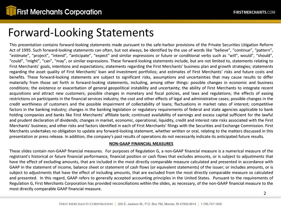 Regulation G, First Merchants Corporation has provided reconciliations within the slides, as necessary, of the non-GAAP financial measure to the