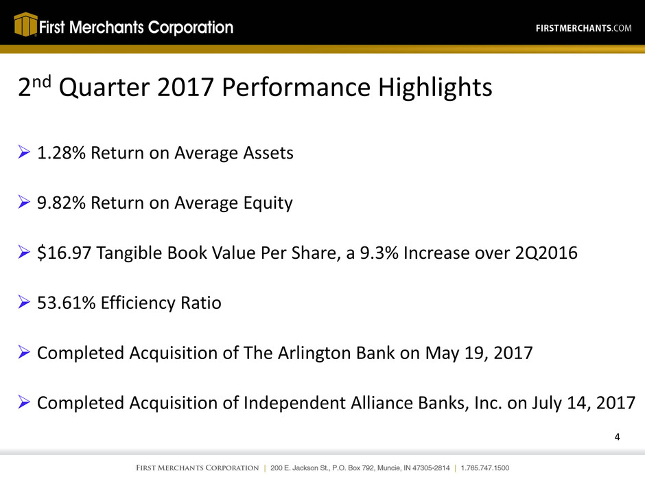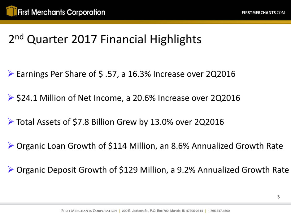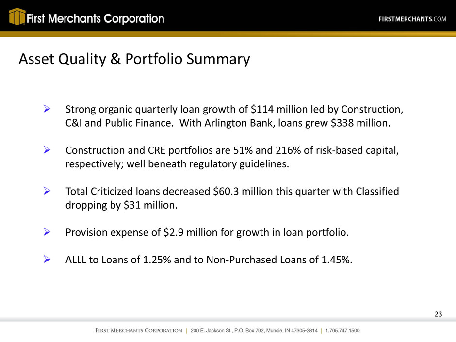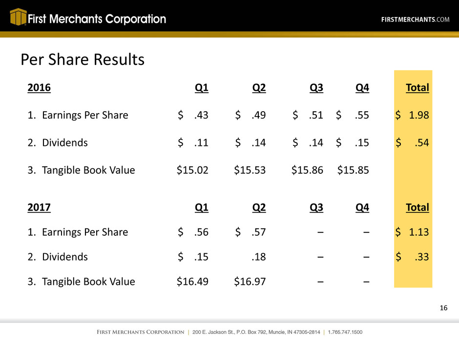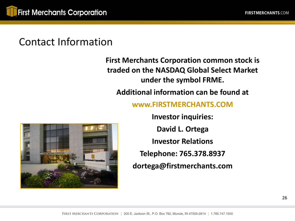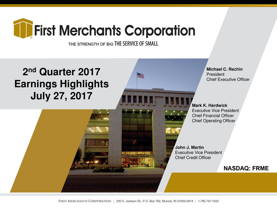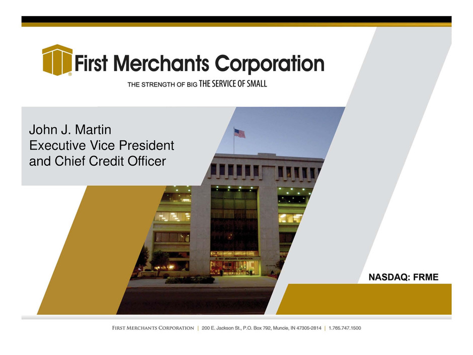 Regulation G, First Merchants Corporation has provided reconciliations within the slides, as necessary, of the non-GAAP financial measure to the