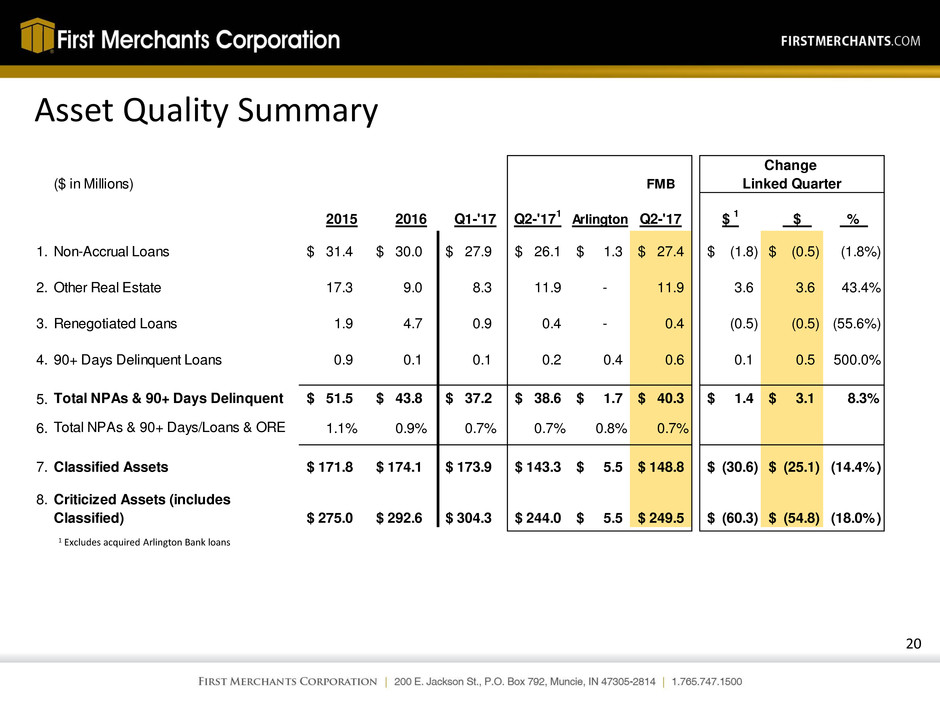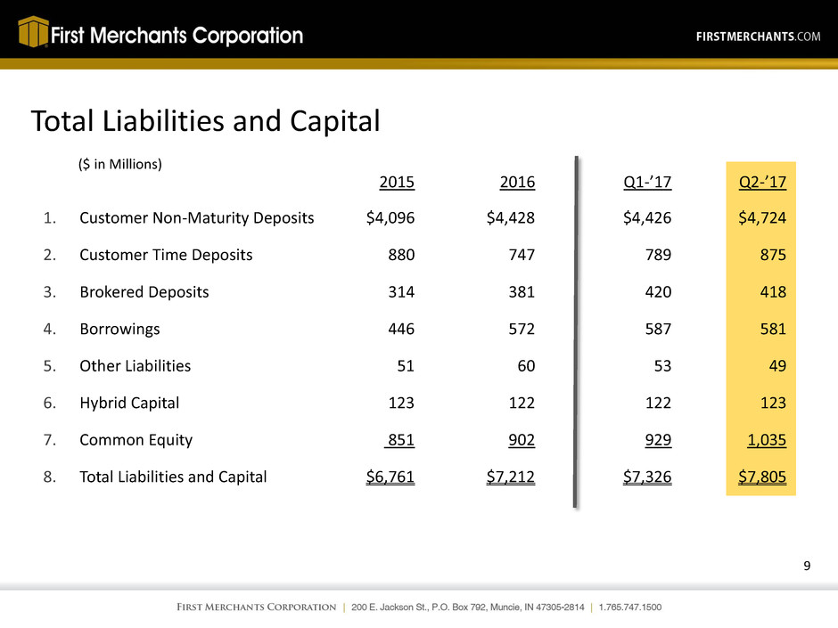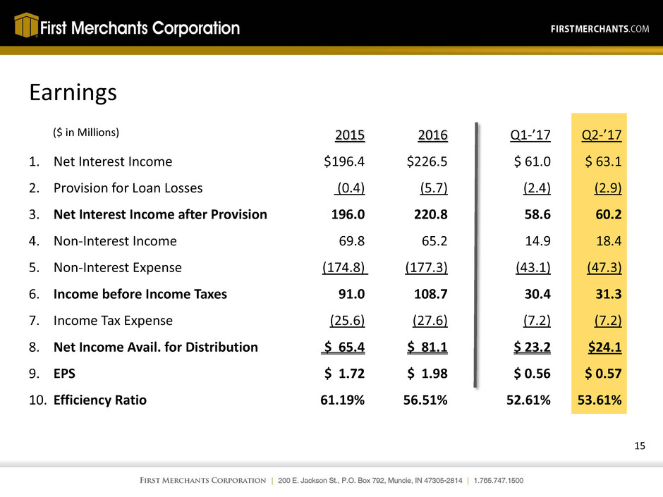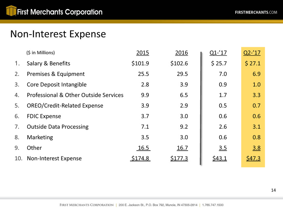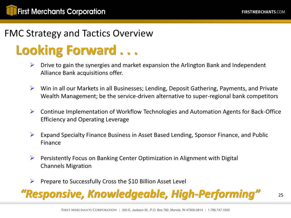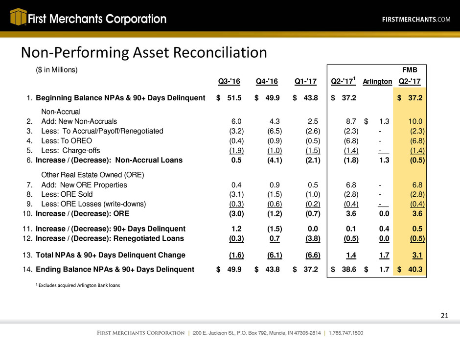 Regulation G, First Merchants Corporation has provided reconciliations within the slides, as necessary, of the non-GAAP financial measure to the