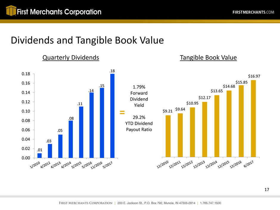 $16.97 Tangible Book Value Per Share, a 9.3% Increase over 2Q2016